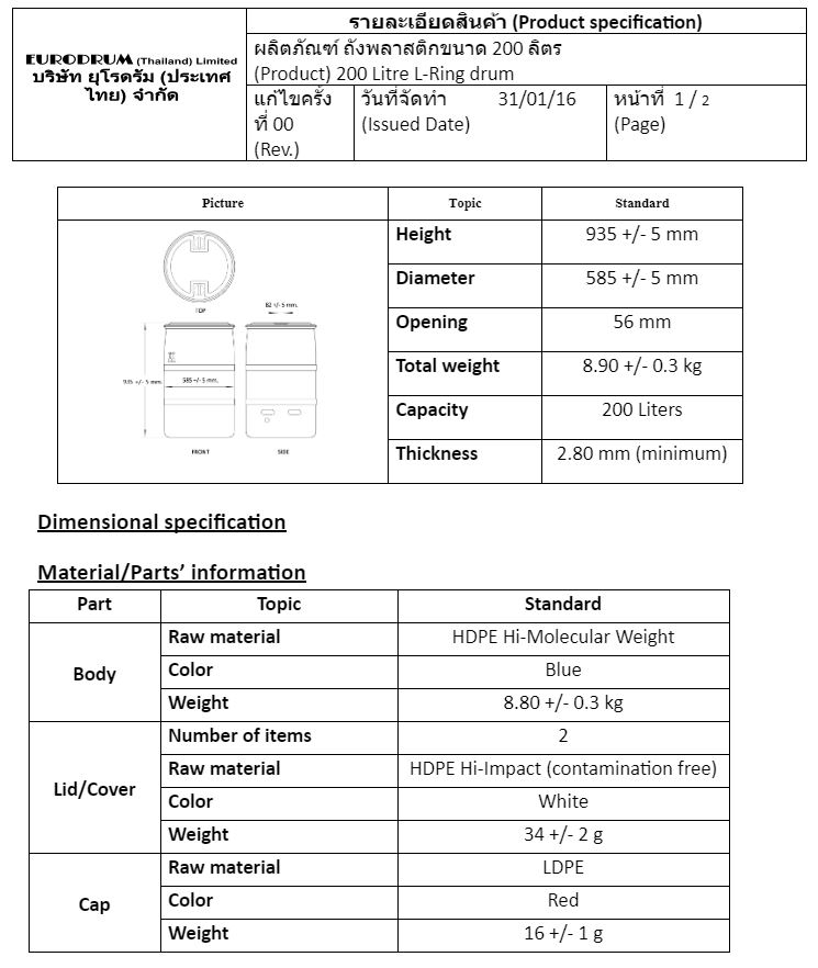 ขนาด 200 ลิตร (ชนิดเปิดปาก)